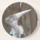 Marabou Stork (Leptoptilos crumeniferus), large wading bird in the stork family Ciconiidae which breeds in Africa, on a wooden background