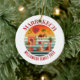 Stylish MARRAKECH Marrakesh personalised holiday vacation Ceramic Ornament with CUSTOMIZABLE TEXT. The design shows the popular vintage sunset design with Moroccan elements, such as a Moroccan fez, camels, vessels, etc. You can add your surname or group name and year at the bottom. Coordinating apparel, gifts and accessories also available.