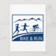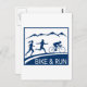 illustration of a silhouette of marathon runner and cyclist race with mountains and words bike and run done in retro style