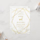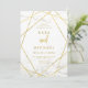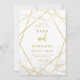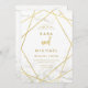 These contemporary wedding invitations feature a white marble look background and faux gold geometric lines for an edgy, modern look.
