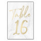 Add a stylish touch to your wedding reception with custom table cards. The wedding table cards feature a white marble background and a faux gold trendy script font. Additional numbers can be found in the collection below.