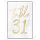 Add a stylish touch to your wedding reception with custom table cards. The wedding table cards feature a white marble background and a faux gold trendy script font. Additional numbers can be found in the collection below.