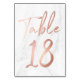 Add a stylish touch to your wedding reception with custom table cards. The wedding table cards feature a white marble background and a faux rose gold trendy script font. Additional numbers can be found in the collection below.