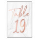 Add a stylish touch to your wedding reception with custom table cards. The wedding table cards feature a white marble background and a faux rose gold trendy script font. Additional numbers can be found in the collection below.