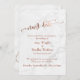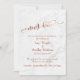 This suite's distinction is due to the modern script font used for accent phrases, embellished with a faux-copper effect. If you're in the position of needing to inform your wedding guests that you've had to change your big date, here is an elegant option. In this piece, the pretty font was used to create a simple graphic depicting the word "new date"; the same font was used to render "love" that was placed on the reverse. The background was covered in a subtle grey and white marble image. Use the template fields to add your personal details and make this unique, modern design your own. // 57 //