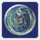 An abstract image depicting a watery planet, reminiscent of our Earth. At its centre, the Om symbol, which in Buddhist tradition symbolises the essential vibration of the universe.