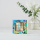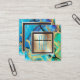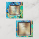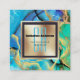 Marble faux gold blue green square monogram chic business card