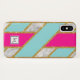 Capture attention with this chic marble design Barely There iPhone X Case with hot pink and blue lattice edged in a luxury FAUX gold glitter pattern. Personalise by adding your monogrammed initial. NOTE: Flat printed image NOT actual glitter or marble.