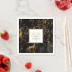 An abstract background reminiscent of marble in shades from charcoal grey to black veined with glittering gold is the backdrop for elegant script text and modern design layouts in the pieces of this beautiful wedding suite. The wedding paper napkin shown here features the above plus optional flowing script text of 'Mr & Mrs'' with a template to add your personal thank you message, bride and groom's names and wedding date. Search ID644 to see all the coordinating pieces in this set.