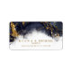 An abstract background reminiscent of marble in shades of navy blue veined with glittering gold is the backdrop for elegant script text and modern design layouts in the pieces of this beautiful wedding suite. The wedding address label shown here features the above plus a template to add the bride and groom's names and wedding address. Search ID644 to see all the coordinating pieces in this set.