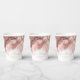 An abstract background reminiscent of marble in shades of soft blush pink through taupe and veined with glittering rose gold is the backdrop for elegant script text and modern design layouts in the pieces of this beautiful wedding suite. The wedding paper cup shown here features the above plus optional flowing script text of 'Love & Thanks' and a template to add the bride and groom's names and wedding date. Search ID644 to see all the coordinating pieces in this set.