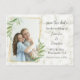 Sprigs of greenery decorate the gold geometric frame around the photo, with a marble background for an elegant modern minimalist design. Personalise the design by adding your own photo and wedding details.