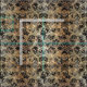 A dark marble texture coloured in deep blacks and greys with gold veins is combined with a faux gold foil textured geometric pattern.