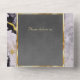 This elegant All In One wedding invitation features a dark grey center on a black and white marble background, framed with gold roses and leaves, embellished with a gold scroll heart. Designed to coordinate with the "Elegant Marble, Gold Leaves Frame & Scroll Heart" Wedding Collection. To change details, click «Personalize». To move the text or change the text size, font, or color click «Click to customize further»