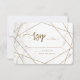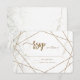 These stylish, modern wedding RSVP cards feature a white marble look with faux copper geometric lines and trendy typography.