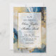 Modern stylish wedding invitation marble blue with gold dust on with a gold ink pour effect (the gold is a digital effect, not real foil!) and modern calligraphy. Classy and elegant, simple and modern invitation.
