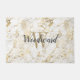 This chic, elegant design features a white and gold marble background. Personalise it with your monogram initial in gold coloured serif font and your family's name in charcoal grey calligraphy script.
