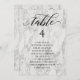 Modern and elegant design printed Marble Black Calligraphy Script Seating Plan Individual Table Card that can be customised with your text and add each table number card to your cart, one by one. Please click the "Customise it" button and use our design tool to modify this template. Check out the Graphic Art Design store for other products that match this design!