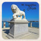 These colourful Paper Coasters features the photo image of one of two gallant white marble lions that stand guard over the entrance to the Bridge of Lions which connects downtown "Old City" Saint Augustine with Anastasia Island. The large carrera marble lions are named “Firm” and “Faithful,” and were originally commissioned by Italian sculptor F. Romanelli in 1927, and later restored. The background features a stunning azure blue sky and numerous sailboats and watercraft anchored in Matanzas Bay, which is part of the Intracoastal Waterway. The text on the Paper Coasters may be easily changed or deleted at no additional cost. Sold in sets of 6. Photography by Glenda Motsavage, a Florida-based travel writer and author.