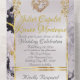 This elegant All In One wedding invitation features a white center on a black and white marble background, framed with gold roses and leaves, embellished with a gold scroll heart. Designed to coordinate with the "Elegant Marble, Gold Leaves Frame & Scroll Heart" Wedding Collection. To change details, click «Personalize». To move the text or change the text size, font, or color click «Click to customize further»