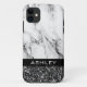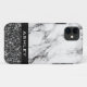 Modern white and black marble stone and black glitter. Custom monogram on black stripe