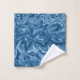 This bath towel set features a marbled pattern in shades of blue including navy blue, cadet, sapphire, azure and sky blue.