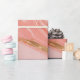 This is a roll of wrapping paper. The wrpping paper design was created with artificial intelligence art. The design features gold foil and peach, pink and red marble swirls. The wrapping paper roll is 30 inches by 6 feet.