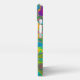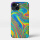 Marbled poured paint abstract pattern in psychedelic shades of bright blue, turquoise, hot pink, green and bright yellow.