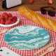 Soft teal, mint and jade with white - in a summer beach-inspired repeating motif.