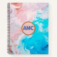 A beautiful marbled design in shades of russet, blush pink, lavender, aqua, and cerulean. Personalise with your name or initials in a circle of russet and blush pink.