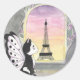 Black and white fairy cat checking out the Eiffel tower in Paris.