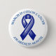 Blue awareness ribbon which stands for Colourectal Cancer Awareness. Buttons to help spread awareness for for March Colon Cancer Awareness Month.