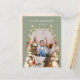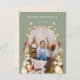 A festive sage green coloured Easter greeting card with a personalised photo and greeting alongside vintage artwork of spring flowers and 2 bunny rabbits playing musical instruments. Further customise this card with an additional photo on back as well as a longer greeting.