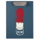 Create a personalised gift that's perfect for marching band members and instructors. This clipboard features a simple illustration of a marching band hat with feathers on the top in cream or ivory and dark red, set against a navy blue background. It's ready to be personalised with monogrammed initials in coordinating cream coloured lettering.