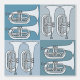 Marching baritone horns in a crosshatch pattern is a unique musical instrument design for low brass musicians, music teachers and school students in marching band.