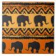 This is a unique decorative tile that features silhouette elephants in an African motif design. The black elephants march across fields of bright orange and gold, with geometric tribal symbols complementing the design.