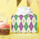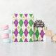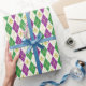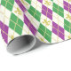 Bright purple and green diamonds overlaid with gold-toned diamond outlines and fleur de lis bring to mind the revelry and celebrations associated with a New Orleans Mardi Gras, while a cream base adds a touch of refinement to this argyle pattern.