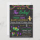 Awesome and Fun, this MARDI GRAS / FAT TUESDAY / NEW ORLEANS / MASQUERADE baby shower/baby sprinkle invitation is great for mardi gras themed baby parties! Invite features adorable mask and bead graphics on a faux chalkboard background.