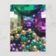 Photograph of Mardi Gras beads. The bead throws feature the gold, purple, and green colours of Mardi Gras or Carnival celebration. Personalise the back of this postcard with your own text or images. Make a custom party postcard invites or invitations!