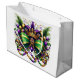 A Large Gift Bag For Mardi Gras Designed In A Crown With Beads And Big Bow
