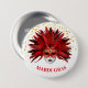 This round button pin is shown with a festive Mardi Gras mask print design.