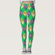 Mardi Gras Carnival Fleur de Lis Diamond Arrangement Geometrical Pattern, Rhombus Green, Yellow, Purple color, Festival Party Decoration. Carnival Masquerade costume, Arlecchino, Harlequin Leggins, Italian Commedia dell'arte, France Comic character Fashion. Funny Carnival Modern Art. Clothing & Shoes > Women > Clothing > Leggings