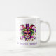 This ceramic coffee mug is shown with Mardi Gras images, Text of "Let the good times roll' is beneath the prints.
