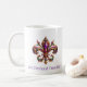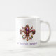 This ceramic coffee mug is shown with Mardi Gras images, Text of "Let the good times roll' is beneath the prints.