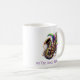 This ceramic coffee mug is shown with Mardi Gras images, Text of "Let the good times roll' is beneath the prints.
