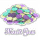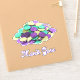 Custom-cut vinyl sticker with an image of purple, green and gold metallic plastic Mardi Gras coins and “Mardi Gras” in purple French script. See the entire Mardi Gras Sticker collection in the INVITES | Stickers & Labels section.