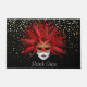 This doormat is shown with a Black coloured background with gold stars with a festive carnival Mardi Gras Mask print.