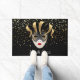This doormat is shown with a Black coloured background with gold stars with a festive carnival Mardi Gras Mask print.