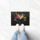 This doormat is shown with a Black coloured background with gold stars with a festive carnival Mardi Gras Mask print.