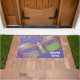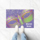 This doormat is shown in purple with a gold stars print with a festive Mardi Gras Carnival Mask print.